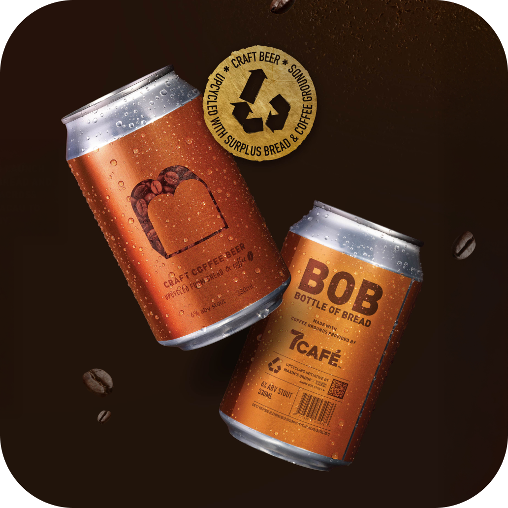 7-Eleven partners with Maxim’s Group, supplying 7CAFÉ coffee grounds along with surplus bread and crusts to local start-up BREER. Through upcycling, they brew two craft beers – Original BOB and Coffee BOB – a range recognised with multiple awards for both sustainability and taste.