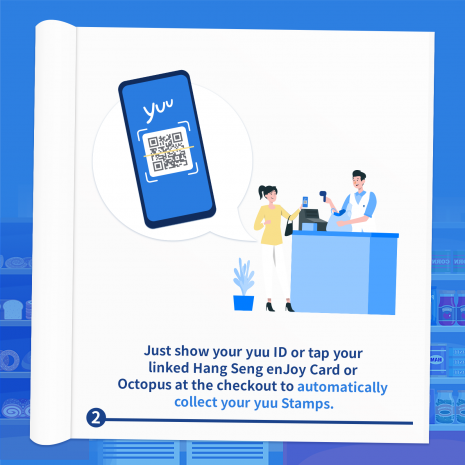 Just present the yuu ID or linked Hang Seng enjoy Card/Octopus at cashier to collect yuu stamps automatically. Save to check the progress
